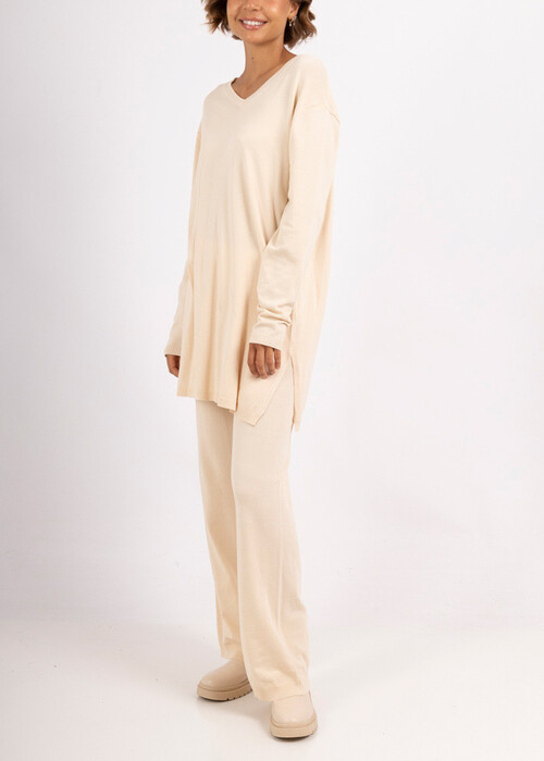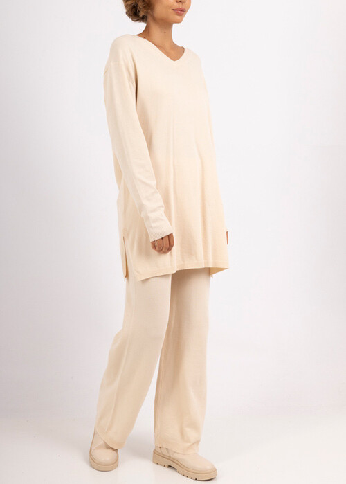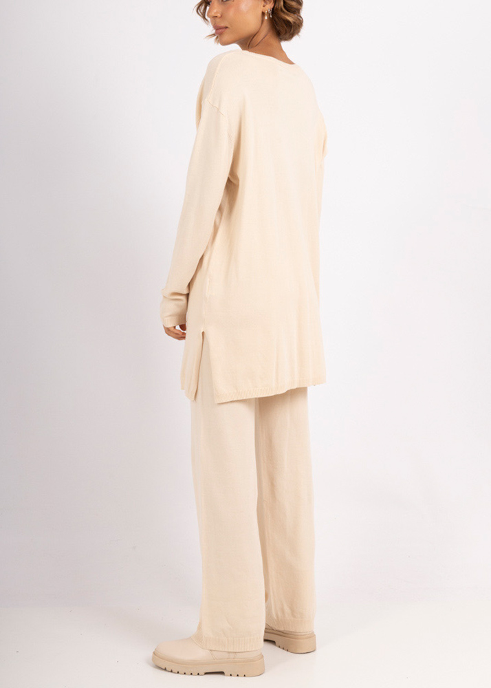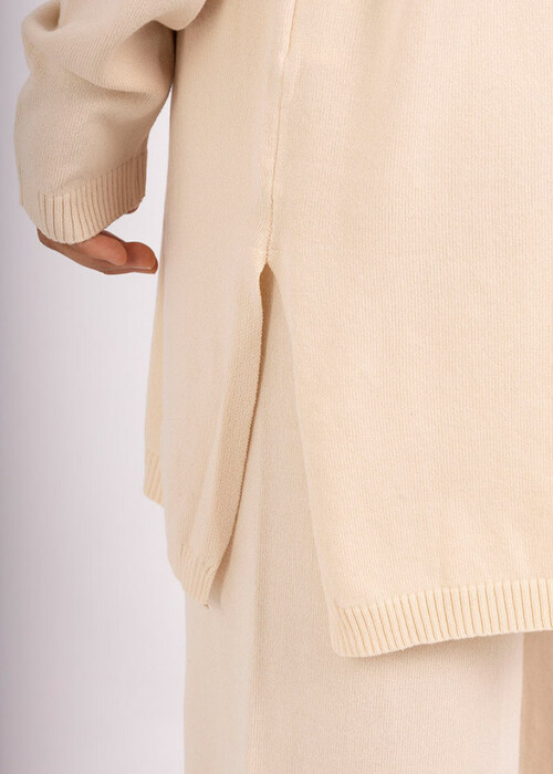 Set Πλεκτό Loose Fit Με Μακριά Μπλούζα Μπεζ